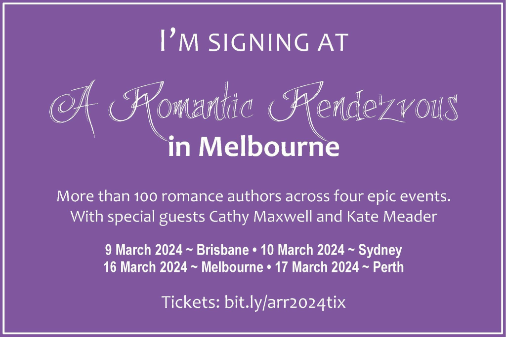 In March 2024 I will be signing at ARRA’s A Romantic Rendezvous in Melbourne.