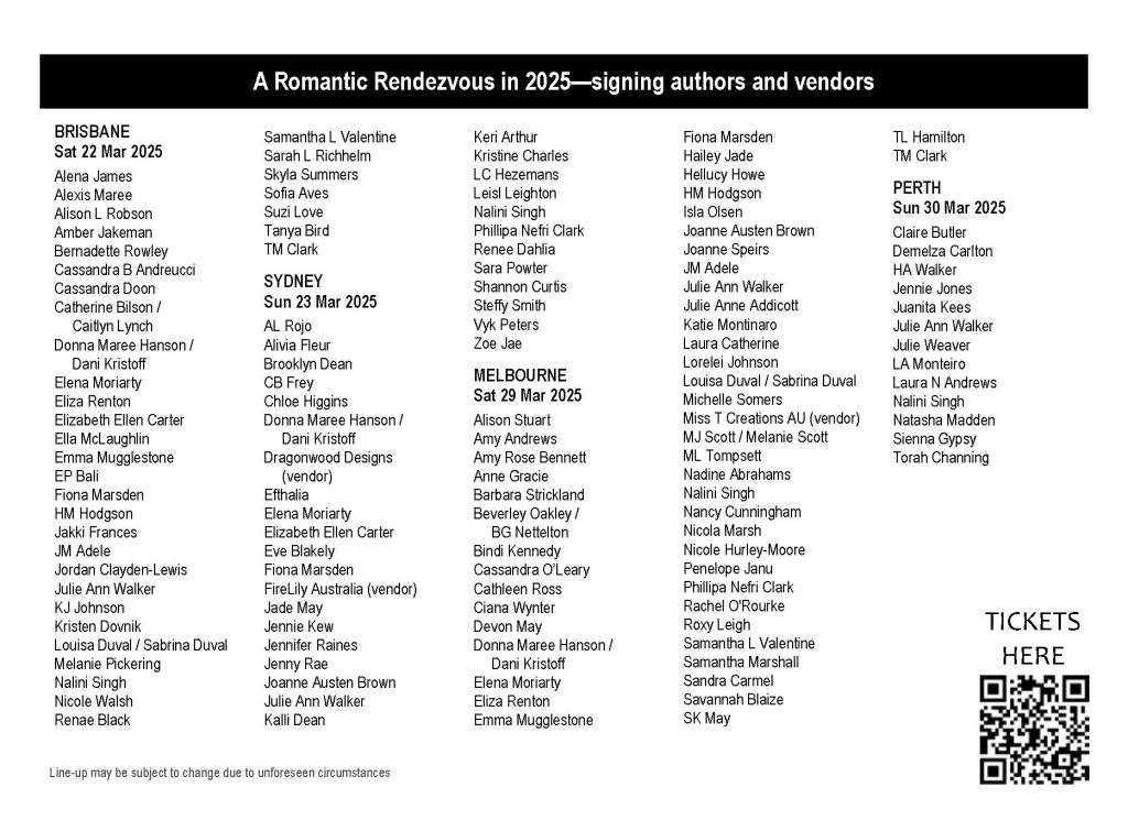 In March 2025 I will be signing at ARRA’s A Romantic Rendezvous in Melbourne.